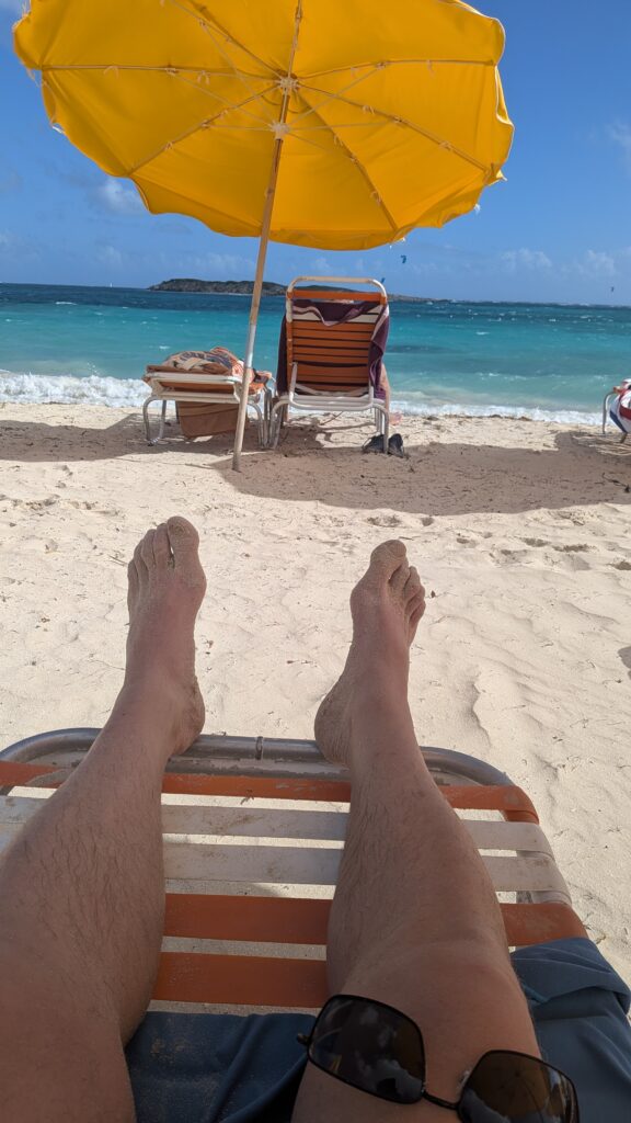 Back to Orient Bay Beaches for not only relaxing on the beach, walking for an hour on the beach, eating on the beach but also getting a massage on the beach.