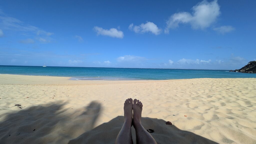 Happy Bay Beach was today’s featured beach. The suggested path was from another beach through a hiking trail. I had to take an alternate path through an abandoned resort from the hurricane.