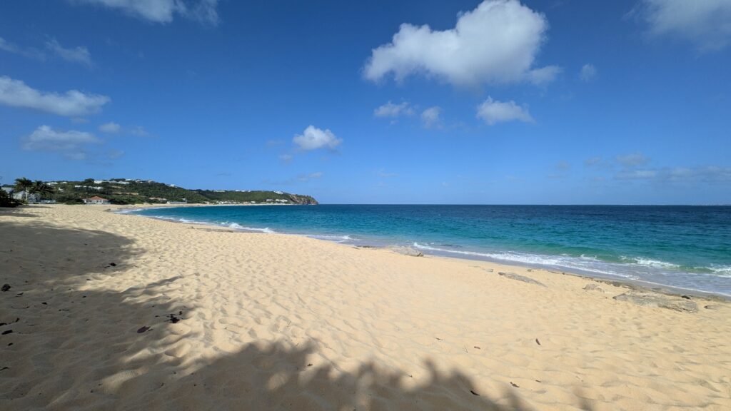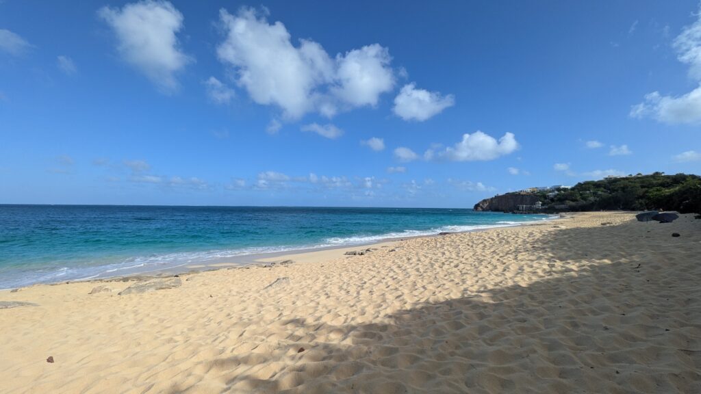 Baie Rouge was the beach. Really nice beach but it was windy all over the Island so more waves.